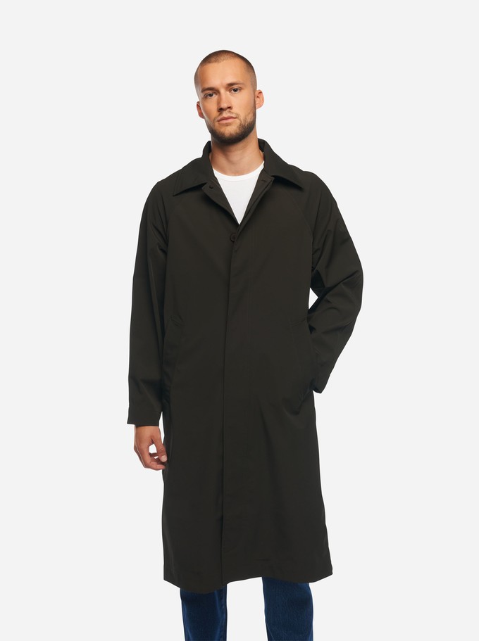 Finally, a truly waterproof raincoat with a luxury appearance that easily adapts to all seasons. Carefully constructed of a technical multi-layer fabric backed with a waterproofing membrane, and developed while keeping in mind Teym’s most important assets: top-notch materials and a fit that’s designed to be loved a lifetime. The Raincoat has a classic slightly oversized silhouette that’s perfect for layering on colder days but that looks just as great worn over your favourite T-Shirt. A subtle hidden button placket that goes all the way down, combined with a generous box pleat at the backside of the jacket will make sure you can easily bike through the rainiest of weathers; The Raincoat’s got you covered.