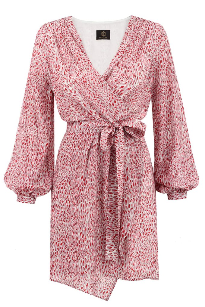 Laurel burgundy silk dress is an elegant cocktail dress. The dress has a closed envelope cut and zips up at the side. The dress is slightly loose at the waist and has a separate belt with which you can adjust the waist, tie in a bow or let loose. The sleeves of the dress are slightly buffeted at the cuff, fastened with a fabric-coated button. The dress is made of beautifully structured Mulberry silk crepe, in a pattern of delicate petals in burgundy and dirty pink with shades of gray.