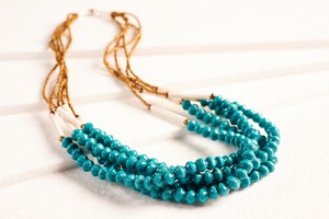 Our Little Sister Act pearl necklace is currently available in the colors blue, mixed colors, dark tones, green, light tones, orange, petrol and pink.