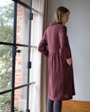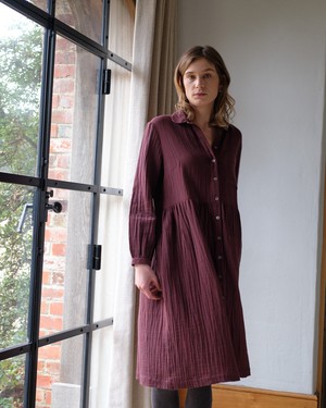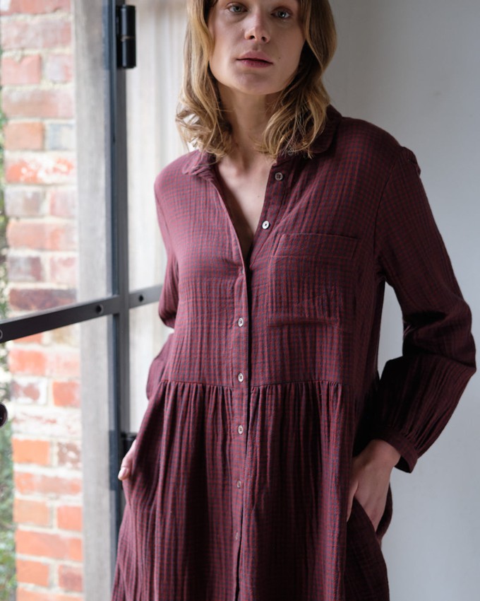 Our Bea shirt dress is a much-loved style. Thoughtfully made with attention to fit and comfort, it has an easy, timeless feel. It’s an everyday piece made in a soft, double gauze checked cotton cloth. A beautiful dress made in a fabric that makes it easy to wear in different seasons. Layer it with a jersey top and a knitted cardigan on colder days. Button-down shirt dress. Two convenient side pockets.