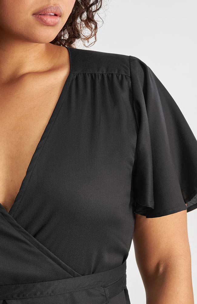 Beautiful little black dress from Dedicated. The dress has a feminine model with v-neck with overlap, waist ribbon and short butterfly sleeves. The dress comes to just above the knee, has a slight A-line shape and is lined so does not shine through. Made of durable and supple TENCEL (made of wood pulp) that has a slight sheen.