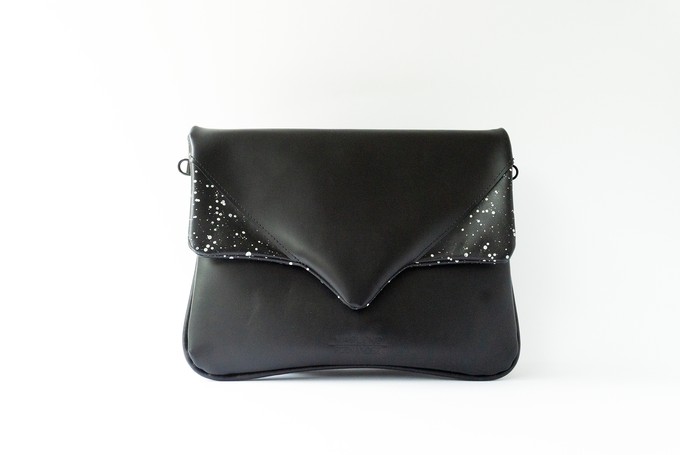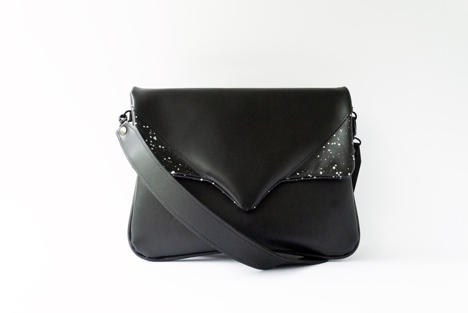 Black leather in combination with black leather with white paint spots.