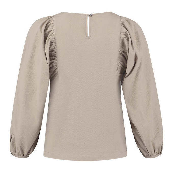 Equipped with three-quarter length puff sleeves, a square neck and a keyhole split in the back of the neck, this feminine blouse is made of 100% cotton. It’s a statement blouse, yet so very versatile. Worn and tucked in with high-waisted pants, or simply with a pair of jeans.