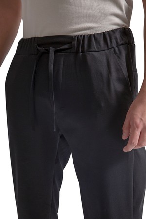 Craft a creative look to match any mood or occasion with these morphing pants. They have a relaxed cut with a slightly dropped crotch, and legs that can be worn straight or buttoned closer to the ankles. There’s also a decorative stripe with buttons running down the side for extra styling options. The waistband is elastic and can be tightened with a drawstring, there are two classic side pockets and one welt pocket on the back.