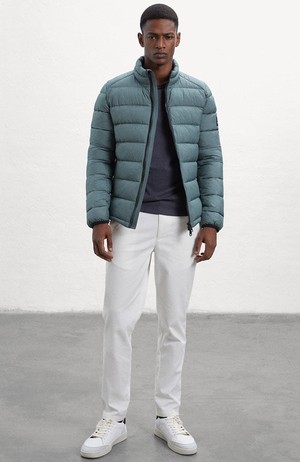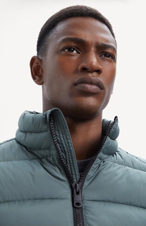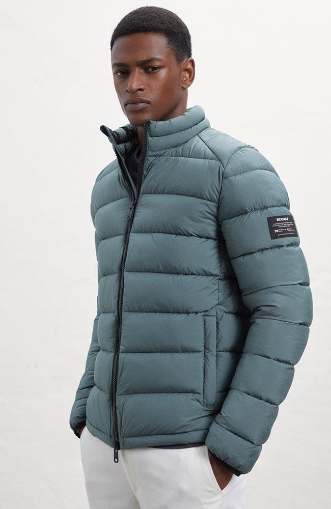 Beautiful gray-green puffer jacket ('dusty green') by Ecoalf made of 100% recycled polyester (mono-material) and totally PETA approved vegan. This beautiful jacket is waterproof, PFC-free, nice and warm yet very lightweight, comfortable and breathable. Ecoalf has set up its own collaboration with local fisherman in Spain and Portugal. The PET bottles they fish up are bought by Ecoalf and from that, among other things, this jacket is made!