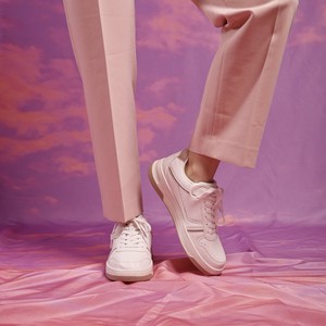 Introducing Dara White: the urban low-top fashion vegan sneakers, featuring recycled microfiber crafting—a sustainable, cruelty-free, and enduring material. These lace-up sneakers boast a sporty, minimalist design, offering a versatile and contemporary appeal adaptable to various outfits and occasions. Their multi-layered upper combines leather-effect microfiber with polyester layers in vibrant pink, violet, and white hues for a colorful statement. Detailed with the logo on the tongue, they prioritize comfort with hypoallergenic, toxin-free, and breathable materials. These sneakers feature moisture-wicking footbeds with EVA padding and a foam-padded collar, ensuring flexibility and blister prevention. Timelessly stylish and comfortable, they're perfect for all-day wear indoors or outdoors, effortlessly merging fashion with comfort.