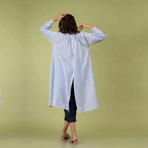 The piece is Upcycled using factory waste. The fabric is collected, cleaned, panelled to create this style. Each piece may come with an extra embroidery or patch but the overall look and feel of the piece are not changed. These pieces are a part of a limited edition collection, the stock is made till the raw material is available.