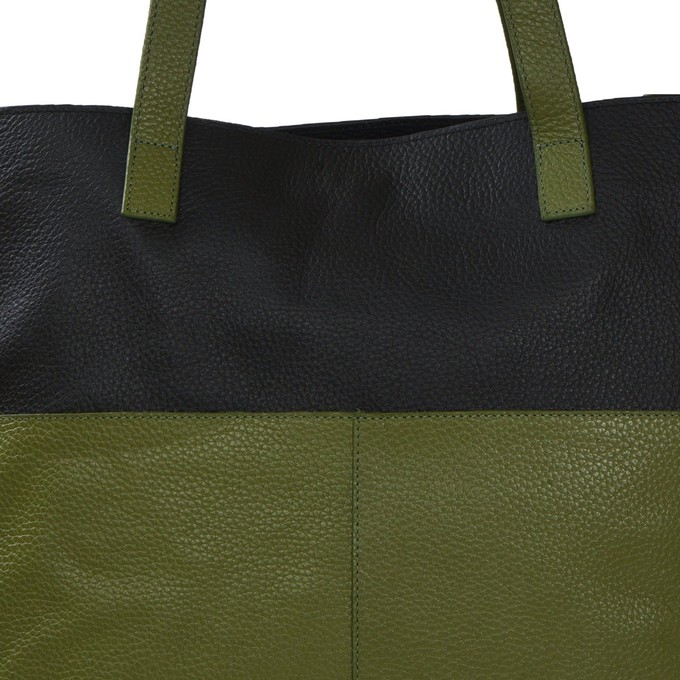 Elevate your everyday style with the Olive and Black Two-Tone Leather Tote, meticulously crafted from responsibly sourced soft leather. This unlined tote is designed for those who appreciate sophistication and practicality in equal measure, making it an ideal companion for both day-to-day tasks and special outings.