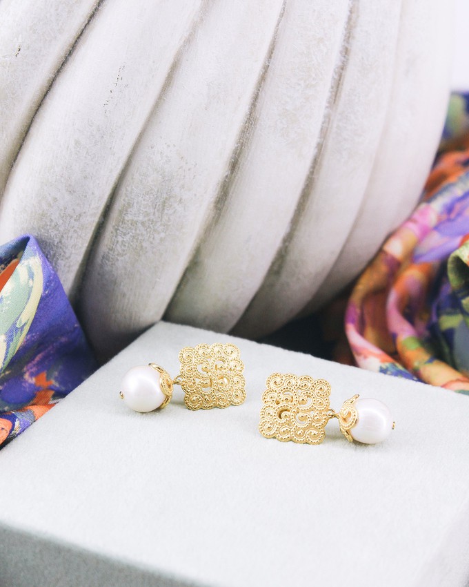as seen in elle. featuring intricate bun bunan work that takes our artisans from 5–7 days to complete, our helena earrings are vintage-inspired handmade masterpieces that stand as testaments to enduring beauty. this delicate design is elevated by the use of sustainable gold vermeil & locally sourced mabe pearls.