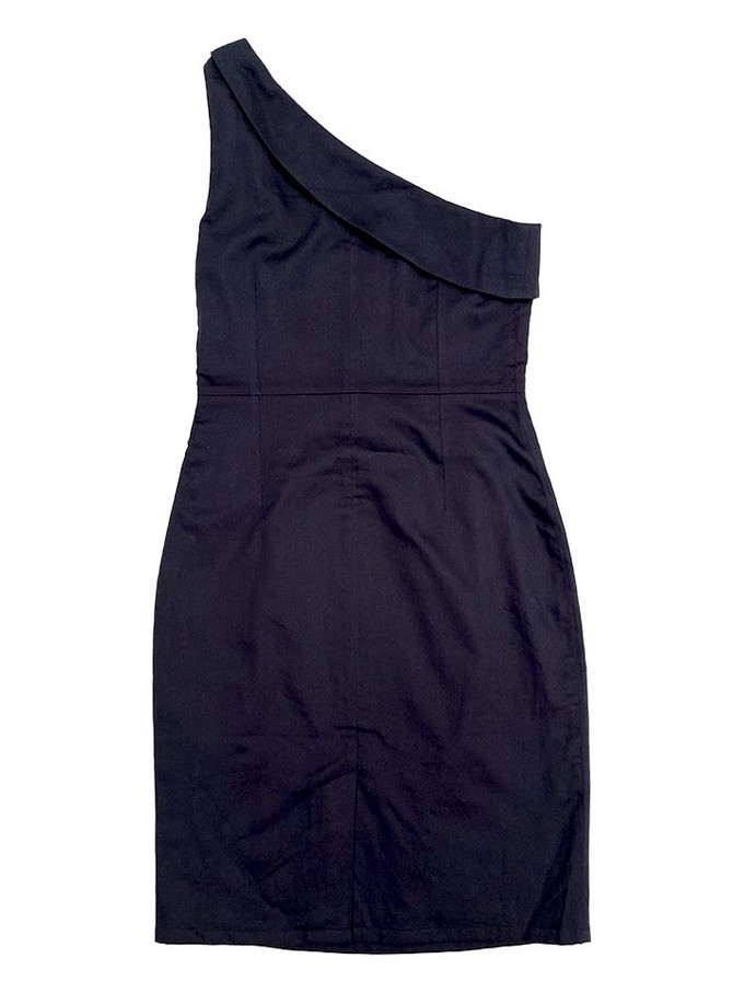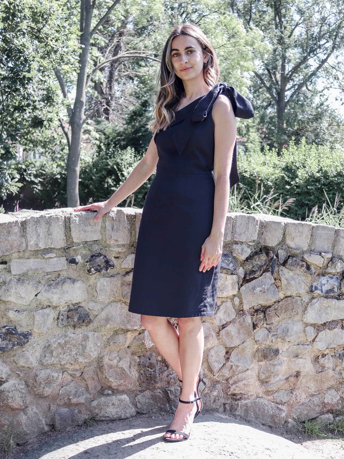 Our one shoulder organic cotton cocktail dress is from a guaranteed Fair Trade origin. It’s a classic evening dress with a large statement self fabric bow on the shoulder, and a cuff detail on the neck edge. The dress is fastened with a concealed side zip and is fully lined.