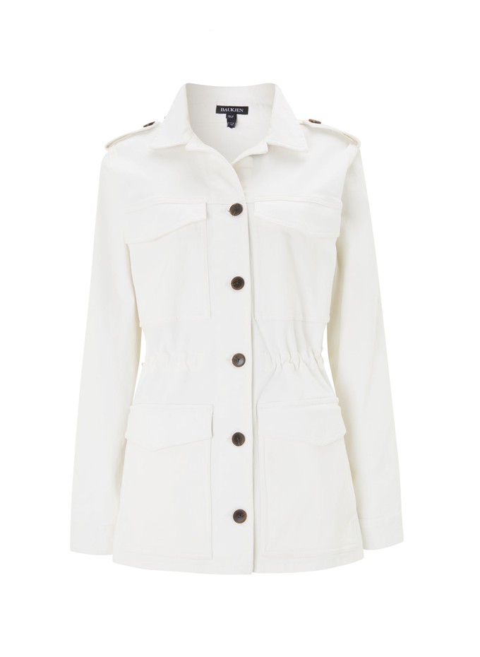 "I happen to think Baukjen's Drake utility jacket is one of the best buys on the British high street. The Drake is utterly classic, utterly timeless, and of a lovely, lastable quality. It's made from organic brushed cotton that is soft to wear but has just the right amount of heft, and is flatteringly, femininely cut. (I especially like the hidden drawstring waist.) Layer it over a T-shirt or a knit. Or feel free to channel Ibiza with a vengeance in a floaty dress."