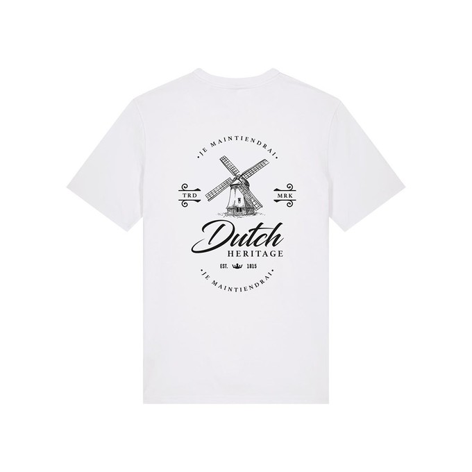 Verrijk je garderobe met ons T-shirt Dutch Heritage, een eerbetoon aan het rijke erfgoed van Nederland dat teruggaat tot vele jaren geleden. Met een prachtige afbeelding van een molen op de achterkant, straalt dit shirt nostalgie en trots uit voor de Nederlandse tradities.