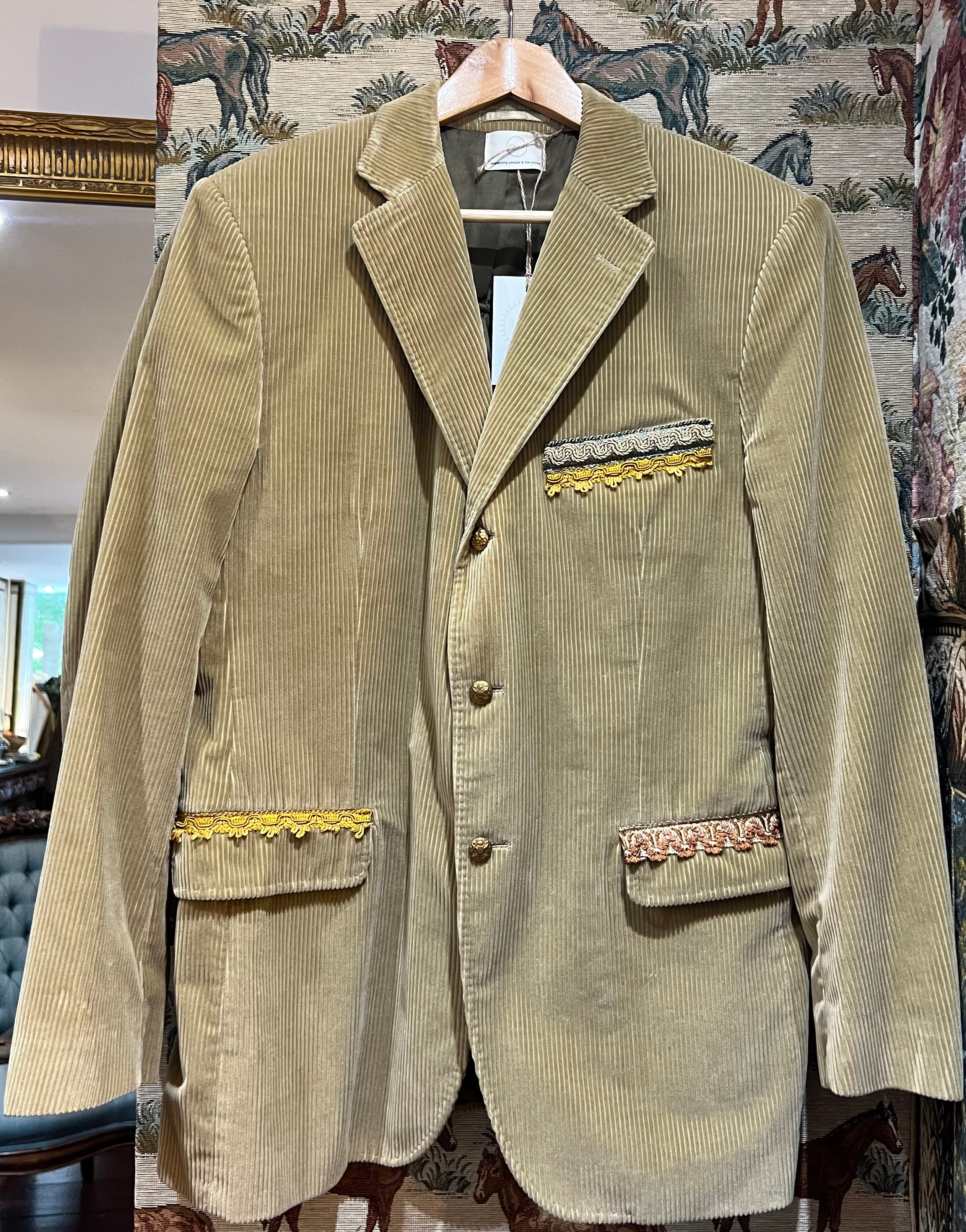 Preloved, laundered and given new life with collected and re used textiles and trims. Each piece is unique.