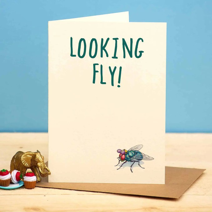 Wenskaart vlieg "Looking fly"
