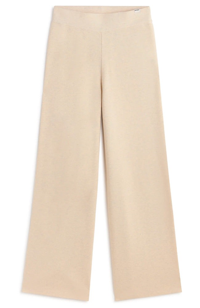 Beautiful knitted pants from Ecoalf in fresh ecru color. The pants are made of organic cotton and Ecovero which makes them very comfortable to wear. The model has straight, slightly flared legs, a normal fit and a wide band at the waist. She is of a nice heavy quality with a slight stretch in the fabric.