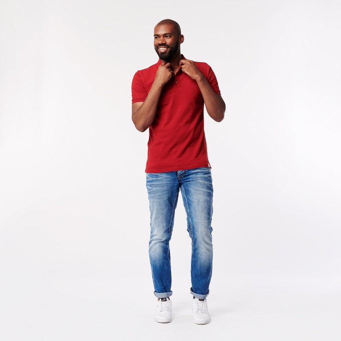 SKOT sustainable Polo's: comfort and style in 10 different colors! The perfect polo for everyday wear. In the color Ruby Red, with White details. A smart choice for quality and comfort at a sharp price. Made as sustainable as possible.