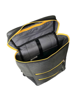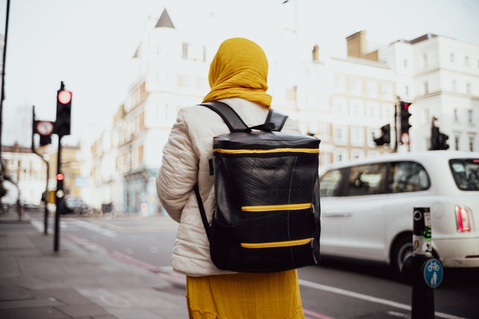 This recycled backpack is handmade by a team of artisans in Cambodia from recycled old inner tubes. It is big enough to carry all your favourites, including books and laptop. It features a great design, one zip pocket inside, a padded divider, and two zip pockets outside. It also has two side pockets to carry your water bottle or umbrella. The Acton backpack is water resistant, easy to clean and ready to come with you on all your adventures. Its purchase contributes to creating job opportunities and to continuing keeping waste out of landfill. Plus, we’ll plant one tree for each backpack sold!