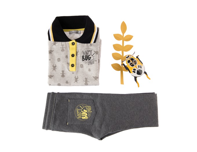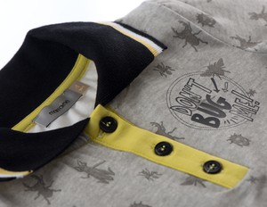 Style details: A Bug's Life! This polo shirt with the exclusive Marraine Kids insect print is made of soft organic cotton with a comfortable amount of stretch. The black striped rib collar and the cool "Don't bug me" front print complete the design.