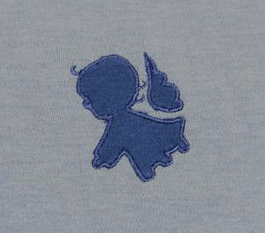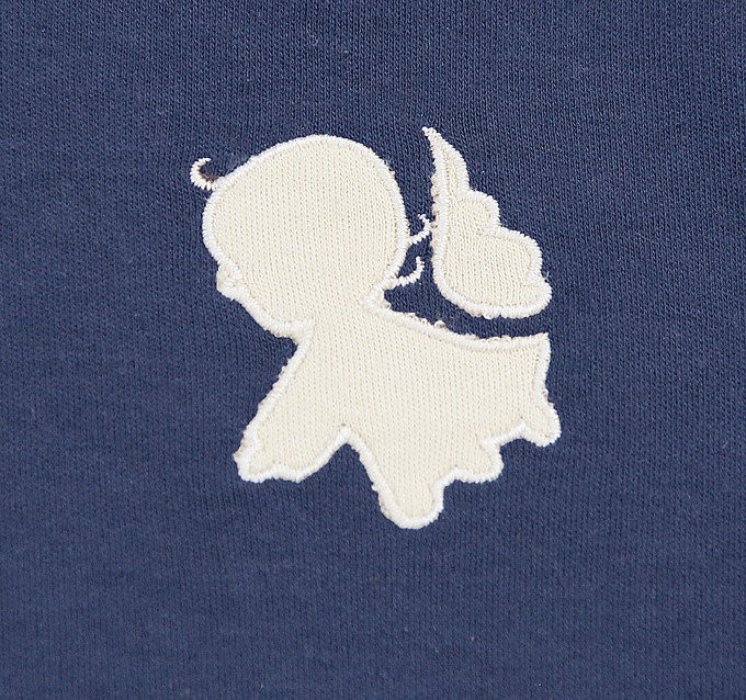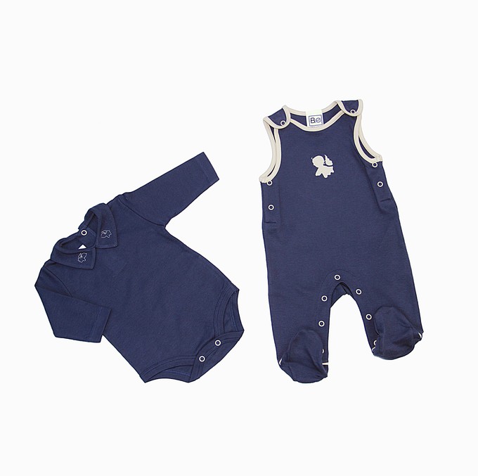 The Newborn Salopette with Foot in certified Organic Pima Cotton has an Angel embroidery in contrasting color