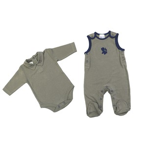 The Salopette with Foot in Organic Pima Cotton is available on sizes 0-3, 3-6, 6-9 months