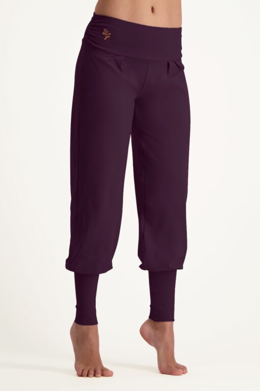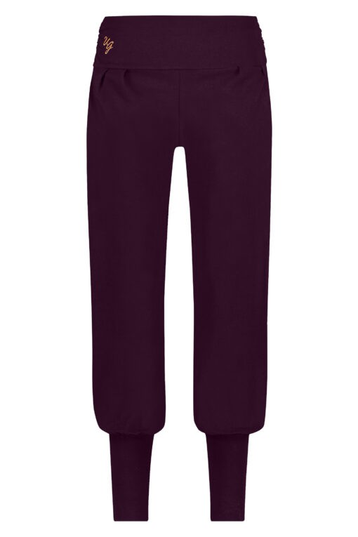 Dakini wide yoga harem pants – BloomOur wide yoga harem pants Dakini have a comfortable fit and are made of our signature soft fabric. They have a loose fit, but no low crotch. This way, you are not restricted by unnecessary fabric during your yoga practice. On the stomach and hips, there is a pleated waistband that gives extra support and creates a flattering look. Beautiful, yet functional!Loose fit yoga pants for womenThe legs of the wide harem pants fall wide and come together in long ankle cuffs. This keeps your women’s yoga pants in place, no matter what yoga pose you’re in. It is a yoga pant that is suitable for every moment. For example, wear them to your yoga practice or during meditation. You don’t always have to be active in these loose-fit harem trousers. You can also lounge around on the couch in them.See all our loungewear for more comfy yoga wear to chill in.Soft yoga trousers made of organic cottonThe Dakini yoga pants with waistband are made of soft organic cotton. This fabric feels super light and allows your skin to breathe. As a result, you will never get too hot during your yoga practice. The stretchy fabric gives you all the freedom of movement you need. So you’ll get through your yoga practice comfortably and without any irritations. Combine the wide yoga harem pants with a trendy yoga tank top for the full look.What does Dakini mean?Our Dakini wide yoga harem trousers are an ode to the Dakini, a female messenger of wisdom. The Tibetan word for Dakini, khandro means space dancer. This tells us that these enlightened female goddesses transcend the boundaries of matter and play and dance in the space of infinity.Dakinis are a light, subtle, spiritual energy, the key to the state of enlightenment where boundaries and rules no longer apply. The Dakini may be a bit tricky to articulate, but she is an aspect and energy present within yourself. Look for her, dance, play and feel her in all layers of your being and the world.About Urban Goddess yoga wearWe only use certified organic cotton for our Urban Goddess yoga apparel. That’s why you get all the benefits of the natural breathable fabrics, and we make sure you have a better environment and happy and healthy employees at Urban Goddess.We know how annoying it is to have an itchy or irritating label in your clothing, especially during your yoga practice. That is why we simply do not have labels, and all our Urban Goddess yoga clothes have carelabel stamps.