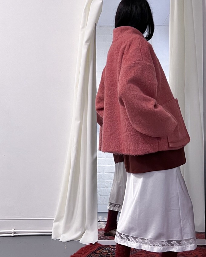 Ethically produced: The collections are designed and sewn in their own studio and one other workshop nearby. These studios are in Amsterdam, the Netherlands. The materials come from a Dutch webshop with woollen blankets and individual online sellers via, for example, Marktplaats and Noordgoed.