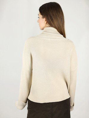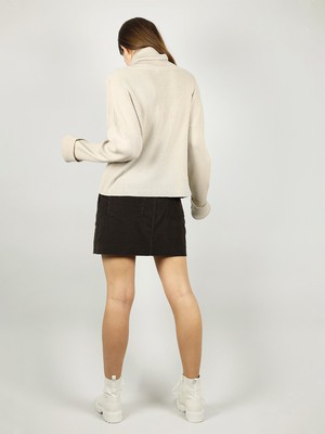 The Cosy Knitted Turtleneck Jumper has a cosy, loose fit. It feels super snuggly and is true to size.