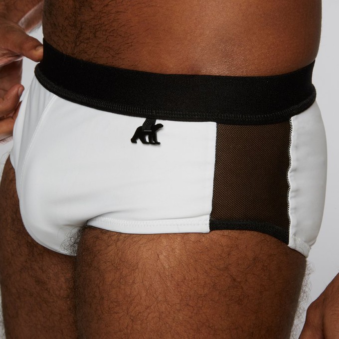 our classic swim trunk for men. fully lined in the same bi-stretch fabric as the outershell. with a metal polar bear logo.