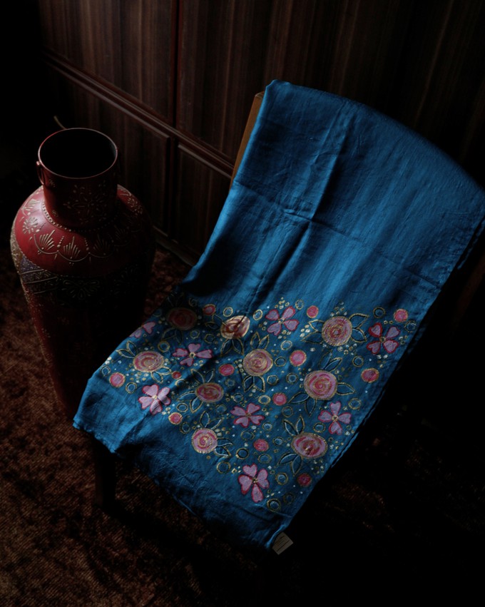 Size & Color: Full-size teal mulberry silk stole 60 x 230 cm.