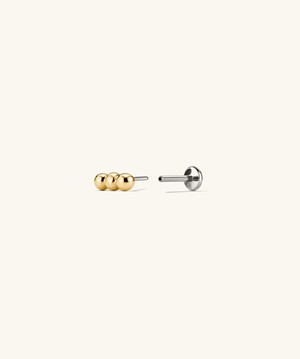 Raise the bar with a gold stud that amps up your stacking look. Three gold spheres turn into a bar that can sit horizontal or vertical. Try stacking multiple for an even shinier look.