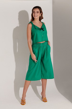 Haydee Trousers are made out of organic cotton. High-waisted, below-the-knee length and front pockets. Its elastic waist detail makes these trousers our most comfortable garment yet.