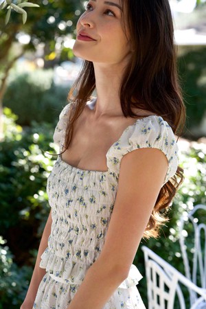 Created from textured upcycled cotton, this two-piece set features a smocked top with a cropped fit, elastic sleeves, a square neckline, and a ruffled hem. The coordinating lined skirt is designed with a waist-structuring panel for a flattering fit and two tiers of ruffles that add volume.