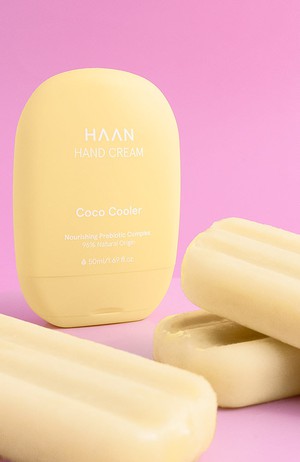 Delicious nourishing hand cream from HAAN and available in several scents, namely: coco cooler (coconut), Fig Fizz (fig), Carrot Kick (carrot).