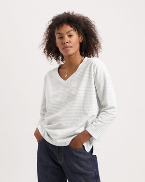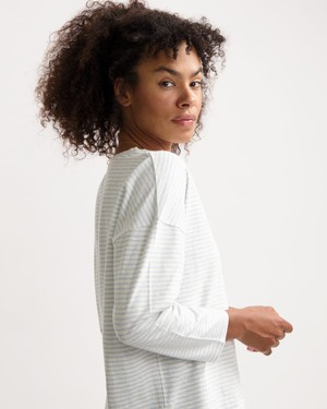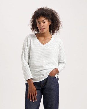 This striped longsleeve has dropped shoulders and a relaxed fit. The women's longsleeve T-shirt is made from a soft blend of hemp and organic cotton. Thanks to the natural fibres, the fabric feels llight and breathable – perfect for everyday wear.