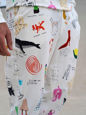 Men's trousers with photo print made of 95% organic cotton, 5% elastane.