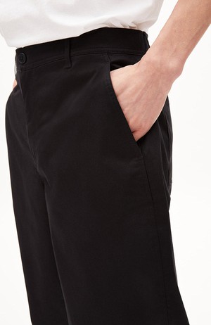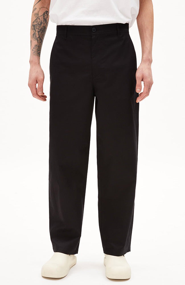 Summer linen pants from ARMEDANGELS in black made a blend of organic cotton and sustainable linen. The pants have a tapered fit, feel very light and are therefore comfortable.