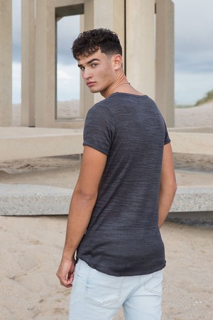 This T-shirt is an essential basic shirt you must have in your wardrobe. Inspired by the mysterious grey color of Punalu'u beach, this item you can wear during the year. Crafted from recyled polyester (68%) and viscose (32%). The uniqueness of this item is the comfortabel fit and the soft 'texture knitted' quality. A cool must have item!