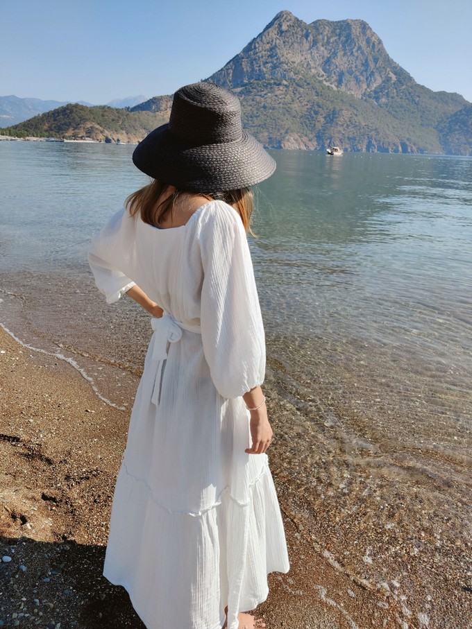 This design is elegant and stylish and goes perfectly with sandals, platforms or sneakers. You can wear it with your shoulders off or open.