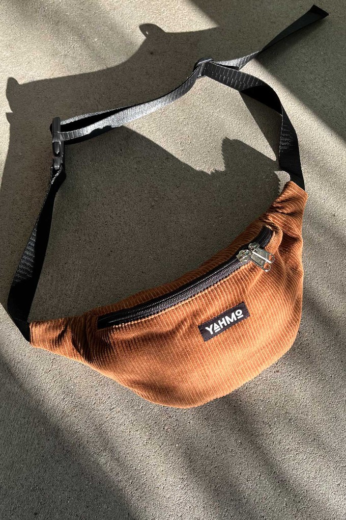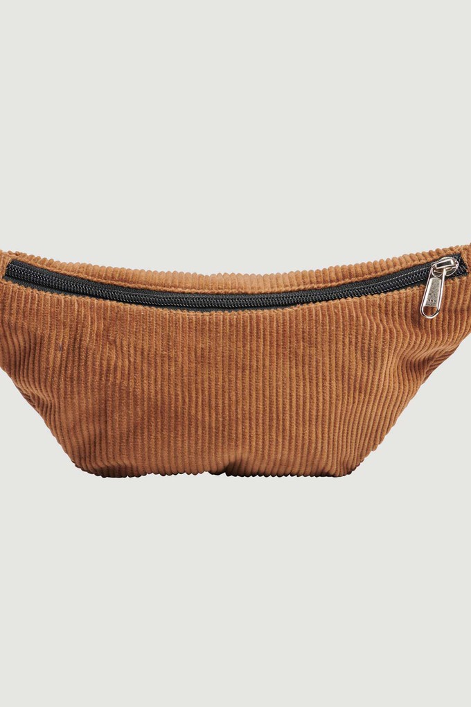Versatile waist bag crafted from cotton corduroy, lined with eco-friendly Tencel™ — with interior pockets, a hidden back pocket and two-way zipper.