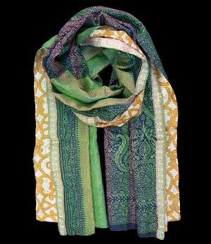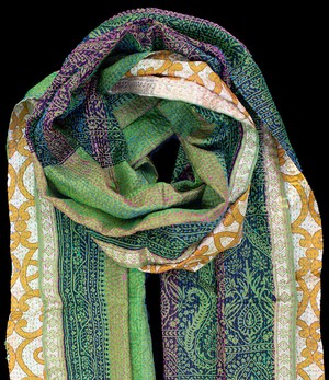 The creative work of kantha embroiderers who turn worn sarees into little masterpieces. This kantha scarf is one of a kind.