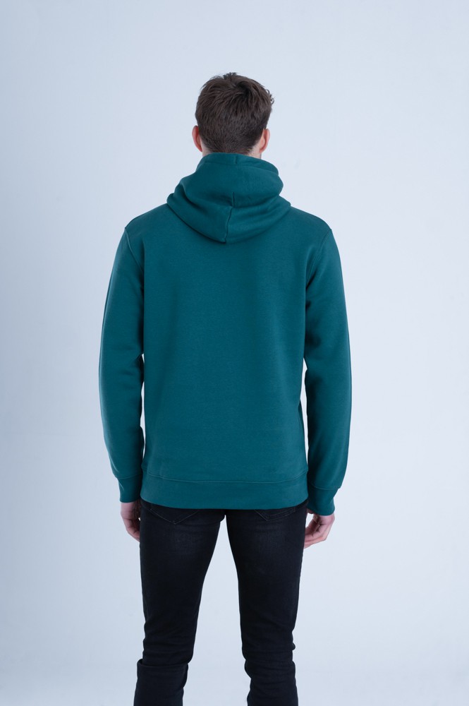 This deep green Premium Organic Hoodie has a tailored fit. The organic fabric feels soft and is of high quality. The timeless design makes this premium hoodie perfect for any season of the year. The hoodie is made of 85% organic cotton and 15% recycled polyester. This hoodie is made under fair and safe working conditions and the production is entirely CO2 neutral.