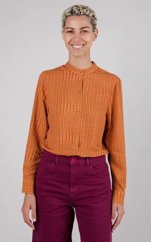 Add a touch to your style with this long-sleeved blouse with Mao collar in a regular fit. You won't be able to take your eyes off from its eye-catching print. Ethically made with Ecovero viscose.