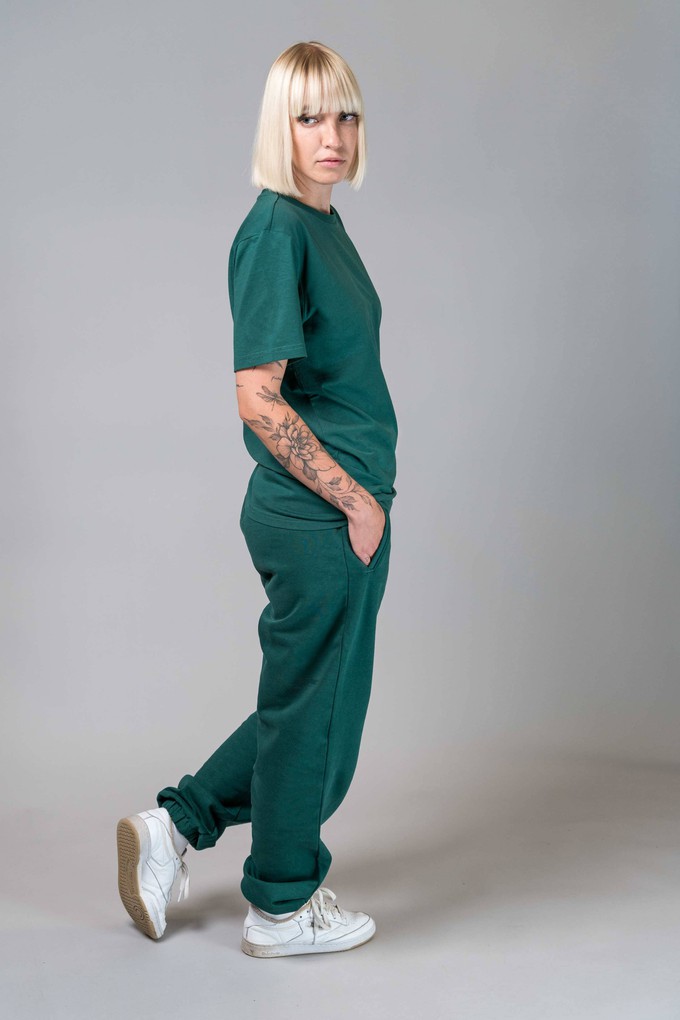 TRACK PANTS YUKI are made of 100% organic cotton and are crafted from a heavy weight cotton with 450 GSM and inside loop back texture inside. These oversized unisex pants are designed to fit everyone. Featuring a relaxed fit, they do not only ensure a comfortable wearing experience, but due to the high-quality fabrics used to make them, they are cozy, soft to the touch as well as on the skin. YUKI comes with an elasticated waist, inner drawstrings, cuffs and side pockets.