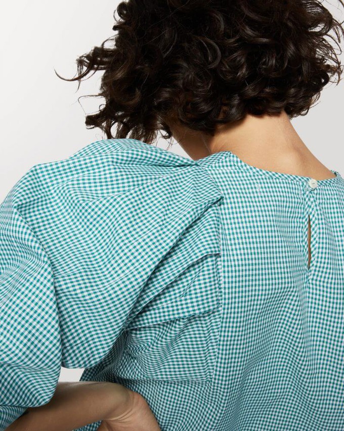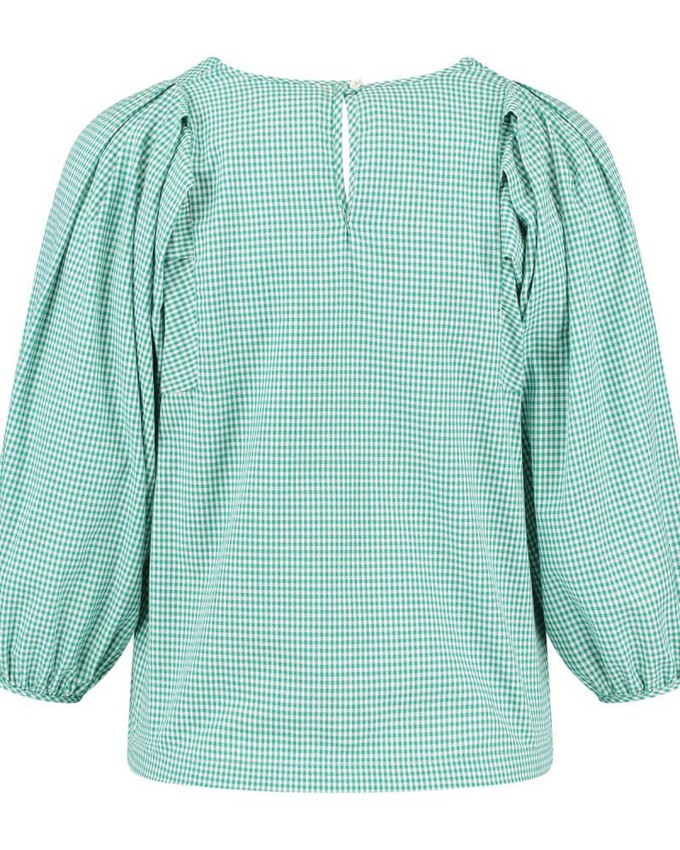 A statement blouse, with a fresh green/white check print and big sleeves, yet so very versatile. Dress up wearing this top tucked in with high-waisted pants, or pair it with jeans for that je ne sais quoi feel.