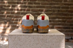 This will be the second collection of our first original sneaker designed and developed with sustainable solutions. Available in a limited run of 100. Just like our first collection we still are still rocking earthy tones of brown, off-white and grey. The new colorways match the flakes of Industrial Garbage that are visible in the outsole; Blue, Red and Yellow.