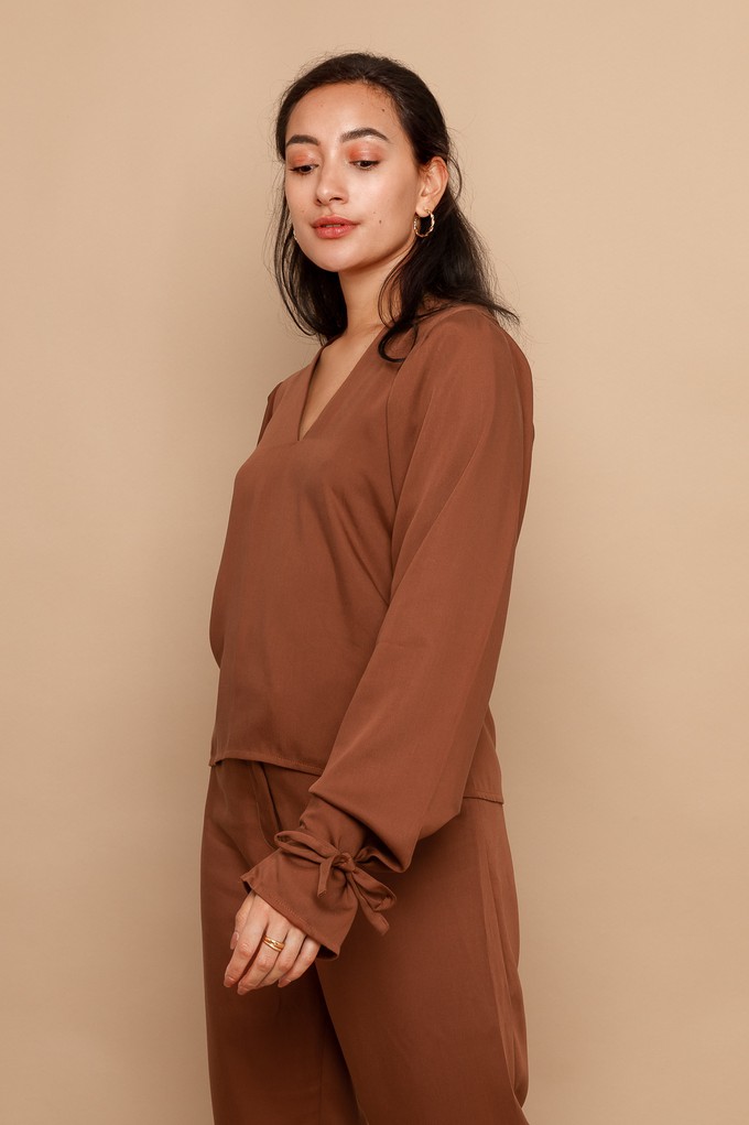 A casual top with a fun twist. The sleeves have straps attached to the end which you can tie up and create this charming sleeve. The fabric of this top is so smooth en drapes down beautifully. Looking charming and being comfortable is what the Nina top is all about.