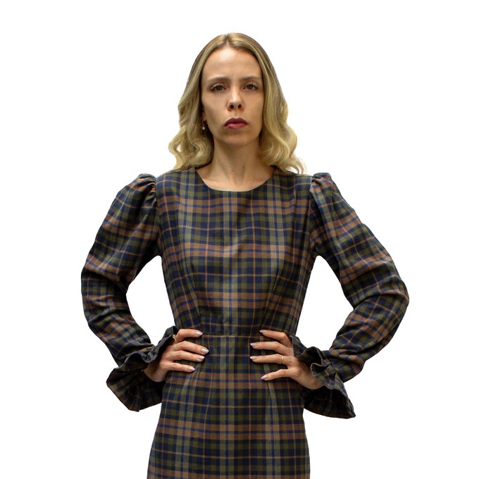 Babette is a mid length dress with long sleeves, featuring a pleated hem. Babette is very comfortable and is the dress for every occasion! She's made of 100% soft Tartan, perfect for the cooler seasons. Available in XS-XL, or bespoke sizes, she's also customisable and can be made in any plain colours of your choice.