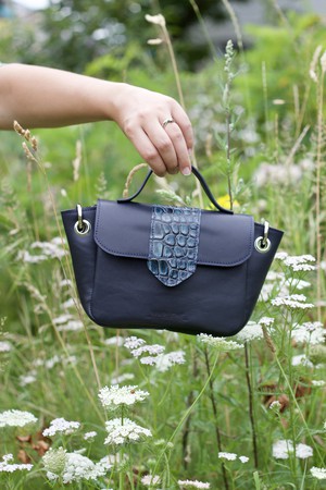 Soft dark blue leather with a blue croco printed flap.