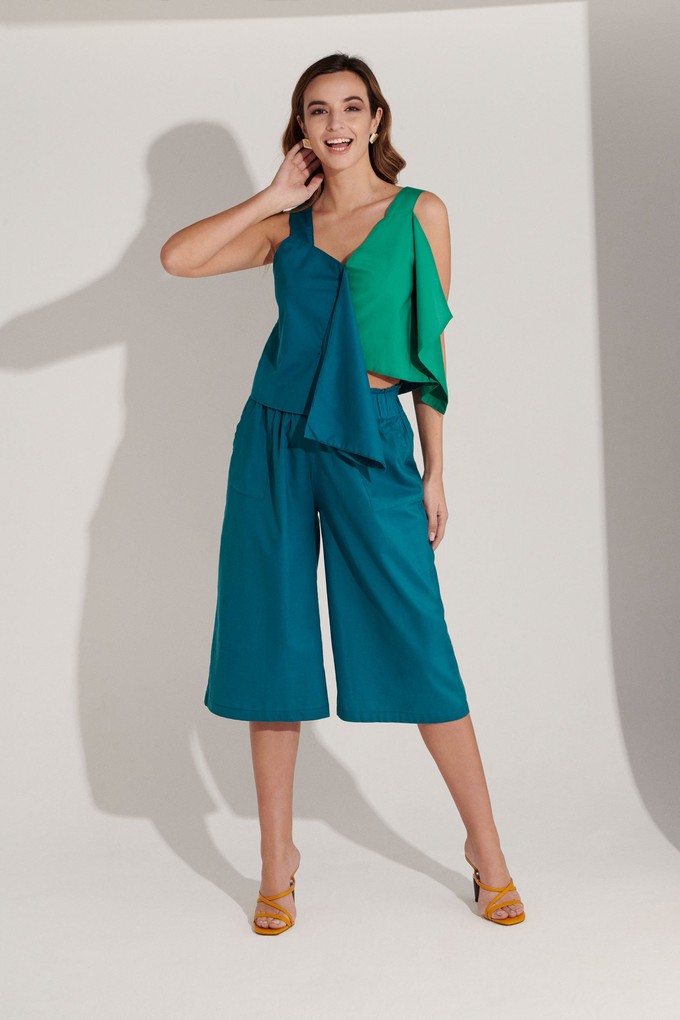 Haydee Trousers are made out of organic cotton. High-waisted, below-the-knee length and front pockets. Its elastic waist detail makes these trousers our most comfortable garment yet.