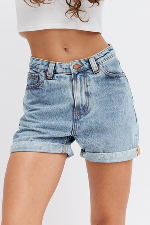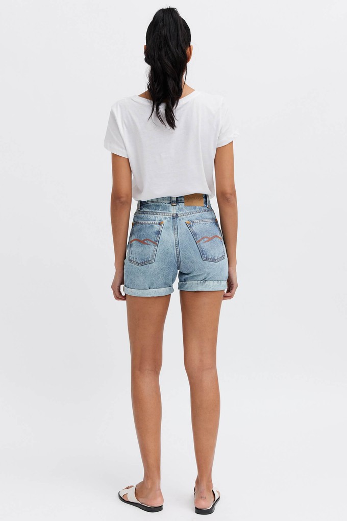 Women´s high waisted denim shorts made to hug your waist and hips, showcasing your best features. With a high rise and curvy waistband combined with copper trims and orange stitch detail, Oxygen stands out from the rest. Made from GOTS certified organic cotton and recycled cotton.